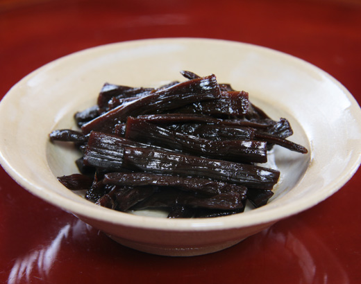 国産原料の少ない中、長年確保して保存してきた国産の「ふき」を甘目の秘伝のタレでじっくりと煮込みました。やわらかく、蕗のほろ苦さを感じる味わいに仕上げてあります。